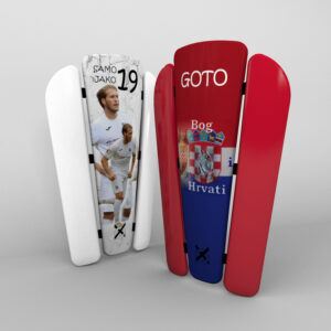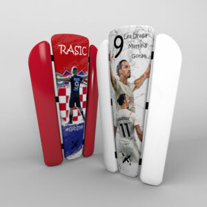 Wir empfehlen, den Schienbeinschoner mit Hautschutzband am Schienbein zu fixieren, indem Sie es an ein oder zwei Stellen über die Socke kleben. Alternativ können Sie hautschonende Taping-Bänder verwenden, die in direktem Kontakt mit der Haut auf der Außenschale des Schienbeinschützers angebracht werden. Ziehen Sie die Bänder nicht zu fest an, um die Blutzirkulation nicht zu blockieren. Die Schienbeinschoner sind so konzipiert, dass sie unter Fußballstutzen getragen werden können.